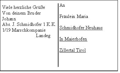 Karte von Johann SCHMIDHOFER (VII/3) | |